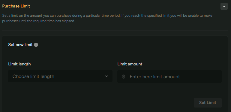 You can set a purchase limit on your account. You can set a spending amount within a selected time frame, helping you manage your budget/spending and maintain Responsible Social Gameplay habits.